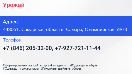 Урожай по адресу 443051, Самарская область, Самара, Олимпийская, 69/3 в дальнейшем Организация, размещена в следующих категориях: