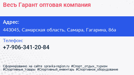 Весъ-Гарант, оптовая компания по адресу 443045, Самарская область, Самара, Гагарина, 86а в дальнейшем Организация, размещена в следующих категориях: