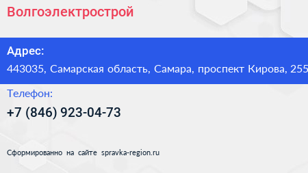 Волгоэлектрострой по адресу 443035, Самарская область, Самара, проспект Кирова, 255 в дальнейшем Организация, размещена в следующих категориях: