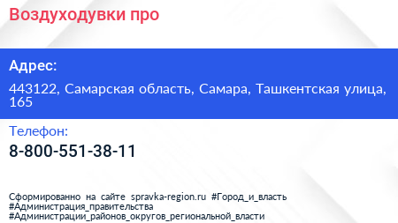 Воздуходувки.про по адресу 443122, Самарская область, Самара, Ташкентская улица, 165 в дальнейшем Организация, размещена в следующих категориях: