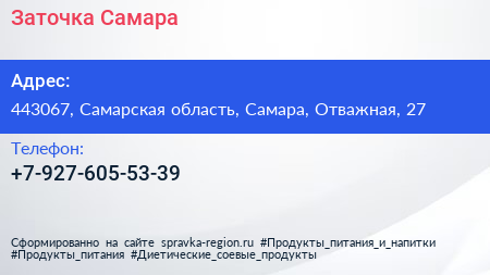 Заточка Самара по адресу 443067, Самарская область, Самара, Отважная, 27 в дальнейшем Организация, размещена в следующих категориях: