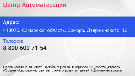 Центр Автоматизации по адресу 443070, Самарская область, Самара, Дзержинского, 13 в дальнейшем Организация, размещена в следующих категориях: