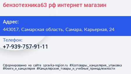 бензотехника63.рф, интернет-магазин по адресу 443017, Самарская область, Самара, Карьерная, 24 в дальнейшем Организация, размещена в следующих категориях: