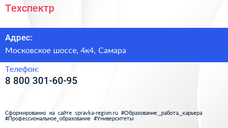 Техспектр по адресу Московское шоссе, 4к4, Самара в дальнейшем Организация, размещена в следующих категориях: