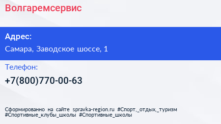 Волгаремсервис по адресу Самара, Заводское шоссе, 1 в дальнейшем Организация, размещена в следующих категориях: