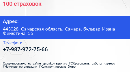100 страховок по адресу 443028, Самарская область, Самара, бульвар Ивана Финютина, 55 в дальнейшем Организация, размещена в следующих категориях: