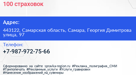 100 страховок по адресу 443122, Самарская область, Самара, Георгия Димитрова улица, 97 в дальнейшем Организация, размещена в следующих категориях: