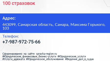 100 страховок по адресу 443099, Самарская область, Самара, Максима Горького, 103 в дальнейшем Организация, размещена в следующих категориях: