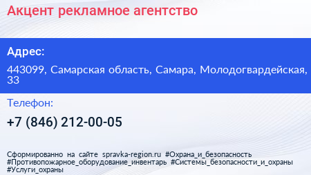 Акцент, рекламное агентство по адресу 443099, Самарская область, Самара, Молодогвардейская, 33 в дальнейшем Организация, размещена в следующих категориях: