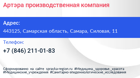 Артэра, производственная компания по адресу 443125, Самарская область, Самара, Силовая, 11 в дальнейшем Организация, размещена в следующих категориях: