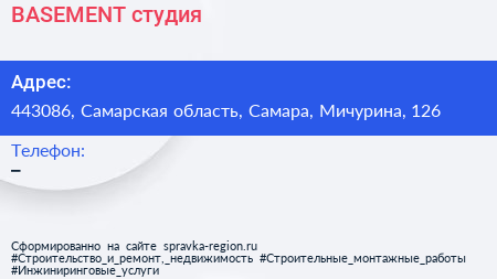 BASEMENT, студия по адресу 443086, Самарская область, Самара, Мичурина, 126 в дальнейшем Организация, размещена в следующих категориях: