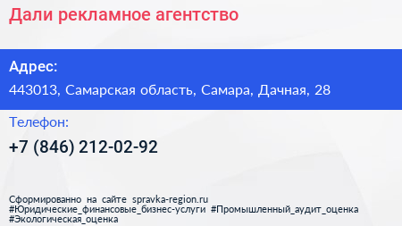 Дали, рекламное агентство по адресу 443013, Самарская область, Самара, Дачная, 28 в дальнейшем Организация, размещена в следующих категориях:
