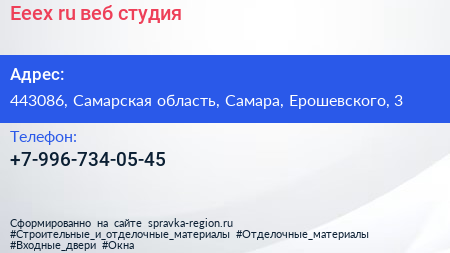 Eeex.ru, веб-студия по адресу 443086, Самарская область, Самара, Ерошевского, 3 в дальнейшем Организация, размещена в следующих категориях: