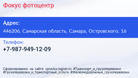 Фокус, фотоцентр по адресу 446206, Самарская область, Самара, Островского, 16 в дальнейшем Организация, размещена в следующих категориях: