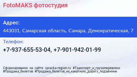 FotoMAKS, фотостудия по адресу 443031, Самарская область, Самара, Демократическая, 7 в дальнейшем Организация, размещена в следующих категориях:
