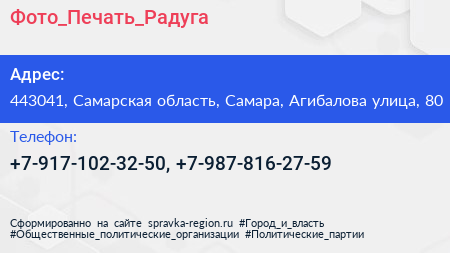 Фото_Печать_Радуга по адресу 443041, Самарская область, Самара, Агибалова улица, 80 в дальнейшем Организация, размещена в следующих категориях: