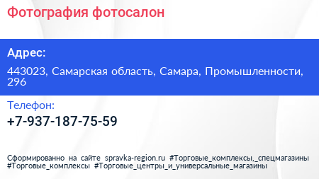 Фотография, фотосалон по адресу 443023, Самарская область, Самара, Промышленности, 296 в дальнейшем Организация, размещена в следующих категориях: