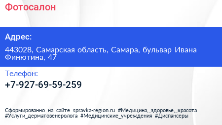 Фотосалон по адресу 443028, Самарская область, Самара, бульвар Ивана Финютина, 47 в дальнейшем Организация, размещена в следующих категориях:
