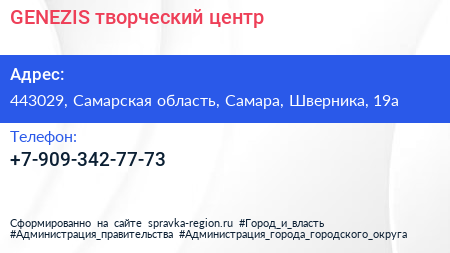 GENEZIS, творческий центр по адресу 443029, Самарская область, Самара, Шверника, 19а в дальнейшем Организация, размещена в следующих категориях: