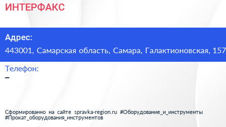 ИНТЕРФАКС по адресу 443001, Самарская область, Самара, Галактионовская, 157 в дальнейшем Организация, размещена в следующих категориях: