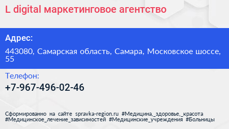 L-digital, маркетинговое агентство по адресу 443080, Самарская область, Самара, Московское шоссе, 55 в дальнейшем Организация, размещена в следующих категориях: