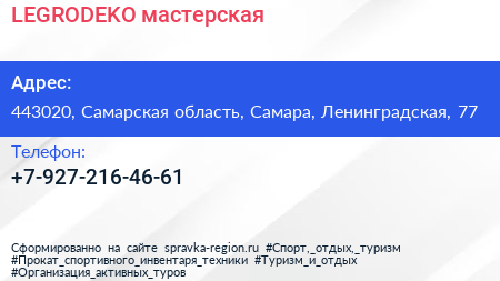 LEGRODEKO, мастерская по адресу 443020, Самарская область, Самара, Ленинградская, 77 в дальнейшем Организация, размещена в следующих категориях: