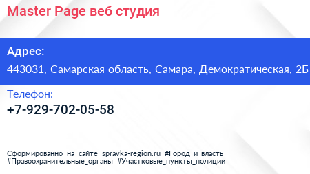 Master Page, веб-студия по адресу 443031, Самарская область, Самара, Демократическая, 2Б в дальнейшем Организация, размещена в следующих категориях: