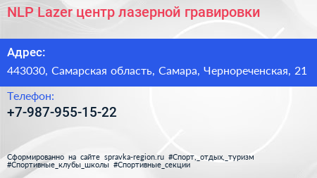 NLP Lazer, центр лазерной гравировки по адресу 443030, Самарская область, Самара, Чернореченская, 21 в дальнейшем Организация, размещена в следующих категориях: