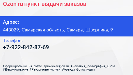 Ozon.ru, пункт выдачи заказов по адресу 443029, Самарская область, Самара, Шверника, 9 в дальнейшем Организация, размещена в следующих категориях: