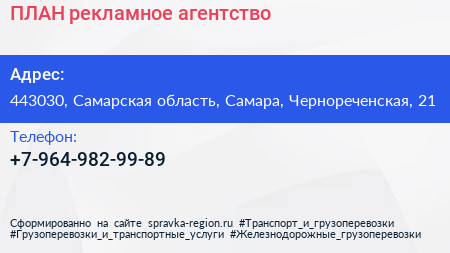ПЛАН, рекламное агентство по адресу 443030, Самарская область, Самара, Чернореченская, 21 в дальнейшем Организация, размещена в следующих категориях: