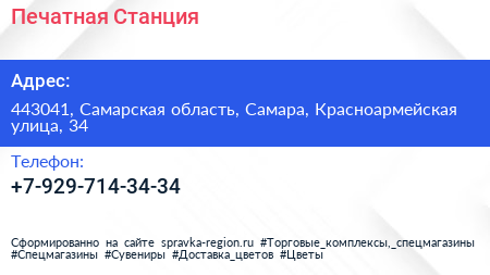Печатная Станция по адресу 443041, Самарская область, Самара, Красноармейская улица, 34 в дальнейшем Организация, размещена в следующих категориях: