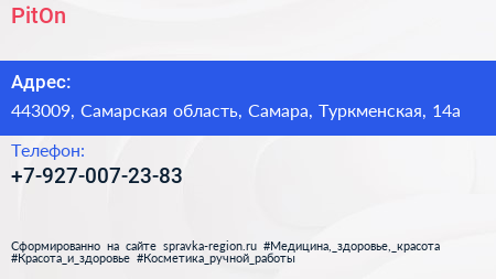 PitOn по адресу 443009, Самарская область, Самара, Туркменская, 14а в дальнейшем Организация, размещена в следующих категориях: