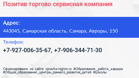 Позитив, торгово-сервисная компания по адресу 443045, Самарская область, Самара, Авроры, 150 в дальнейшем Организация, размещена в следующих категориях: