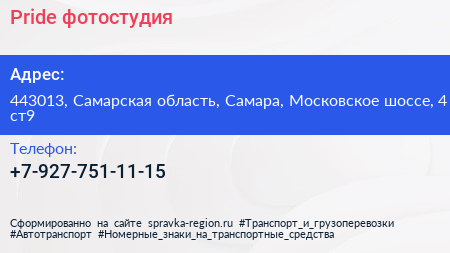 Pride, фотостудия по адресу 443013, Самарская область, Самара, Московское шоссе, 4 ст9 в дальнейшем Организация, размещена в следующих категориях: