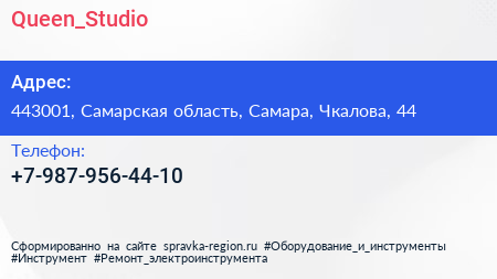 Queen_Studio по адресу 443001, Самарская область, Самара, Чкалова, 44 в дальнейшем Организация, размещена в следующих категориях: