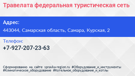 Травелата, федеральная туристическая сеть по адресу 443044, Самарская область, Самара, Курская, 2 в дальнейшем Организация, размещена в следующих категориях: