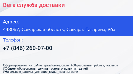 Вега, служба доставки по адресу 443067, Самарская область, Самара, Гагарина, 96а в дальнейшем Организация, размещена в следующих категориях: