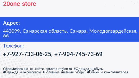 20one.store по адресу 443099, Самарская область, Самара, Молодогвардейская, 66 в дальнейшем Организация, размещена в следующих категориях: