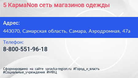 5 КармаNов, сеть магазинов одежды по адресу 443070, Самарская область, Самара, Аэродромная, 47а в дальнейшем Организация, размещена в следующих категориях:
