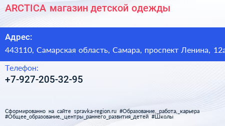 ARCTICA, магазин детской одежды по адресу 443110, Самарская область, Самара, проспект Ленина, 12а в дальнейшем Организация, размещена в следующих категориях: