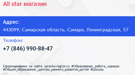 All star, магазин по адресу 443099, Самарская область, Самара, Ленинградская, 57 в дальнейшем Организация, размещена в следующих категориях: