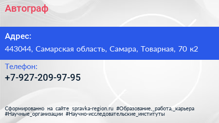 Автограф по адресу 443044, Самарская область, Самара, Товарная, 70 к2 в дальнейшем Организация, размещена в следующих категориях: