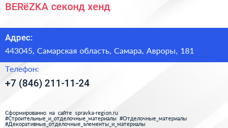 BERёZKA, секонд-хенд по адресу 443045, Самарская область, Самара, Авроры, 181 в дальнейшем Организация, размещена в следующих категориях: