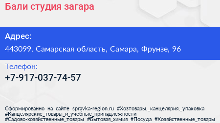 Бали, студия загара по адресу 443099, Самарская область, Самара, Фрунзе, 96 в дальнейшем Организация, размещена в следующих категориях: