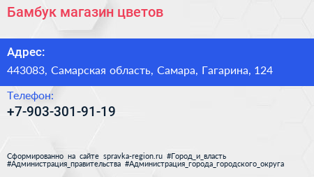 Бамбук, магазин цветов по адресу 443083, Самарская область, Самара, Гагарина, 124 в дальнейшем Организация, размещена в следующих категориях: