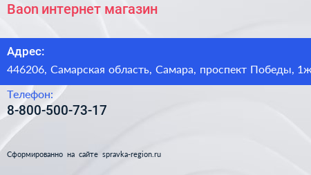 Baon, интернет-магазин по адресу 446206, Самарская область, Самара, проспект Победы, 1ж в дальнейшем Организация, размещена в следующих категориях: