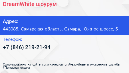 DreamWhite, шоурум по адресу 443085, Самарская область, Самара, Южное шоссе, 5 в дальнейшем Организация, размещена в следующих категориях: