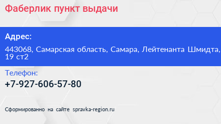 Фаберлик, пункт выдачи по адресу 443068, Самарская область, Самара, Лейтенанта Шмидта, 19 ст2 в дальнейшем Организация, размещена в следующих категориях: