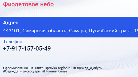 Фиолетовое небо по адресу 443101, Самарская область, Самара, Пугачёвский тракт, 19 в дальнейшем Организация, размещена в следующих категориях:
