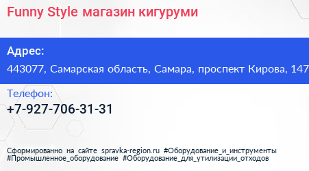 Funny Style, магазин кигуруми по адресу 443077, Самарская область, Самара, проспект Кирова, 147 в дальнейшем Организация, размещена в следующих категориях: